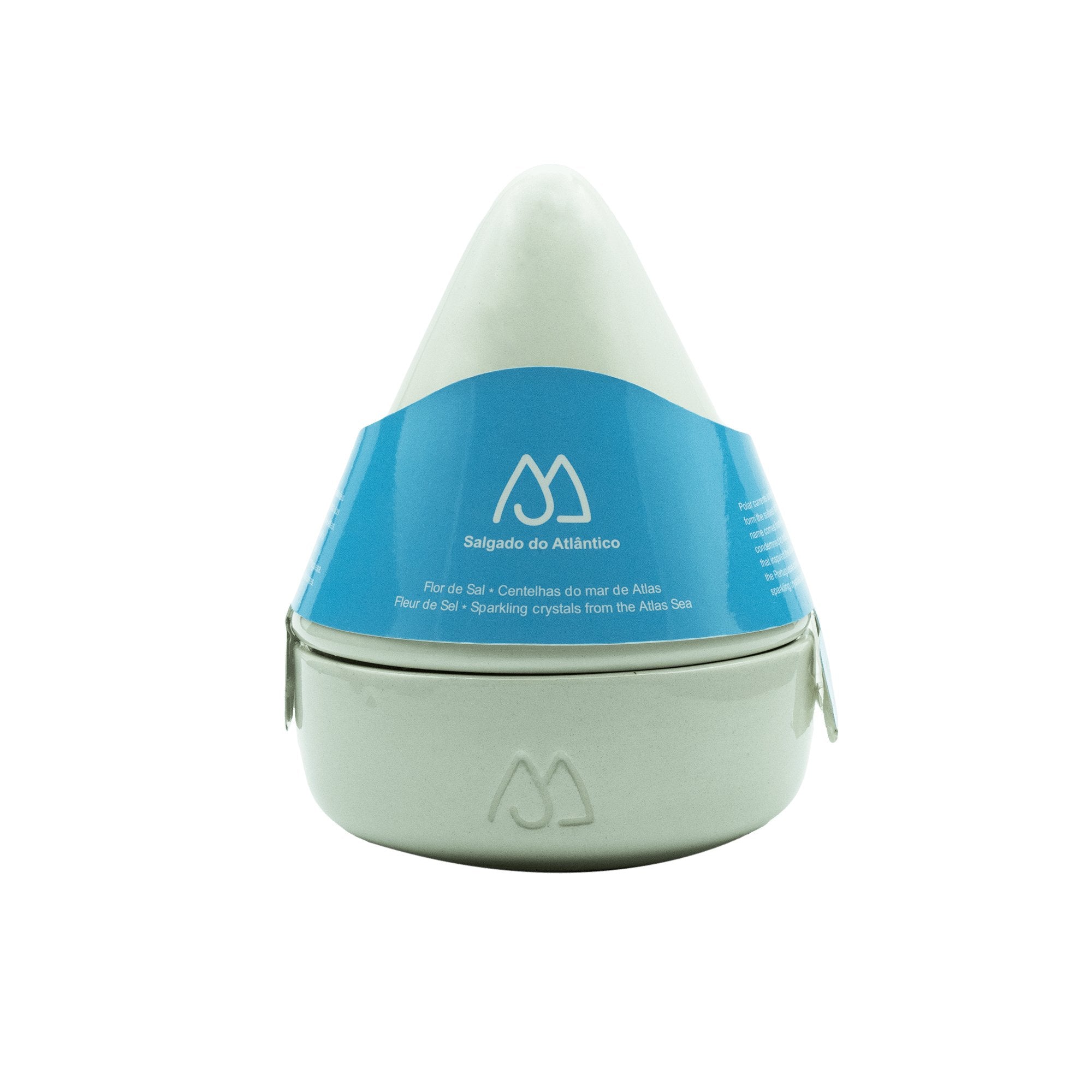 Une salière sophistiquée avec la merveilleuse fleur de sel Sal Riamar, obtenue par évaporation naturelle de l'eau salée, lavée à Aveiro. La fleur de sel, constituée de petits cristaux blancs et cassants, peut être utilisée comme assaisonnement dans la préparation d'une grande variété de plats.