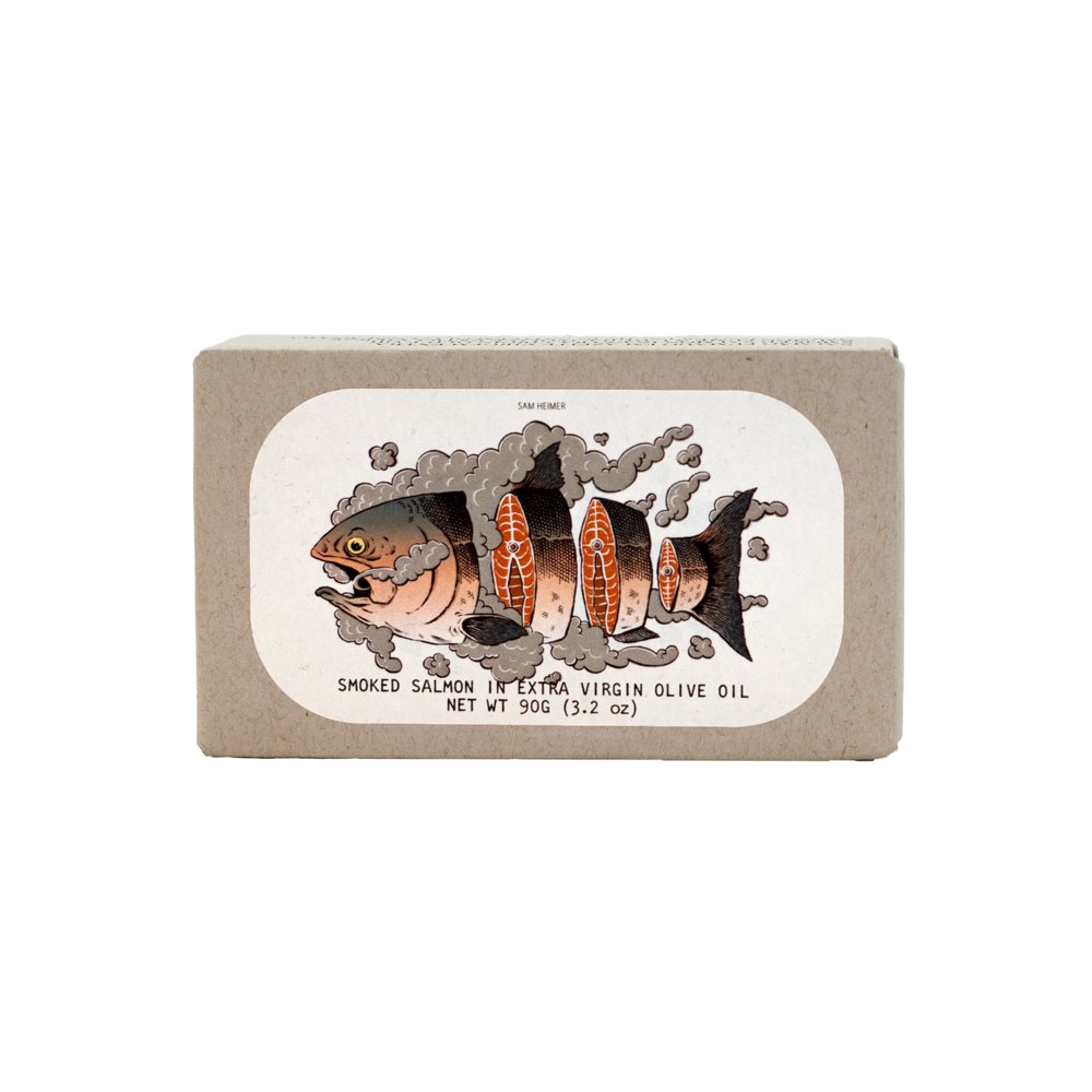 Huile d'olive extra vierge de saumon fumé 90g.