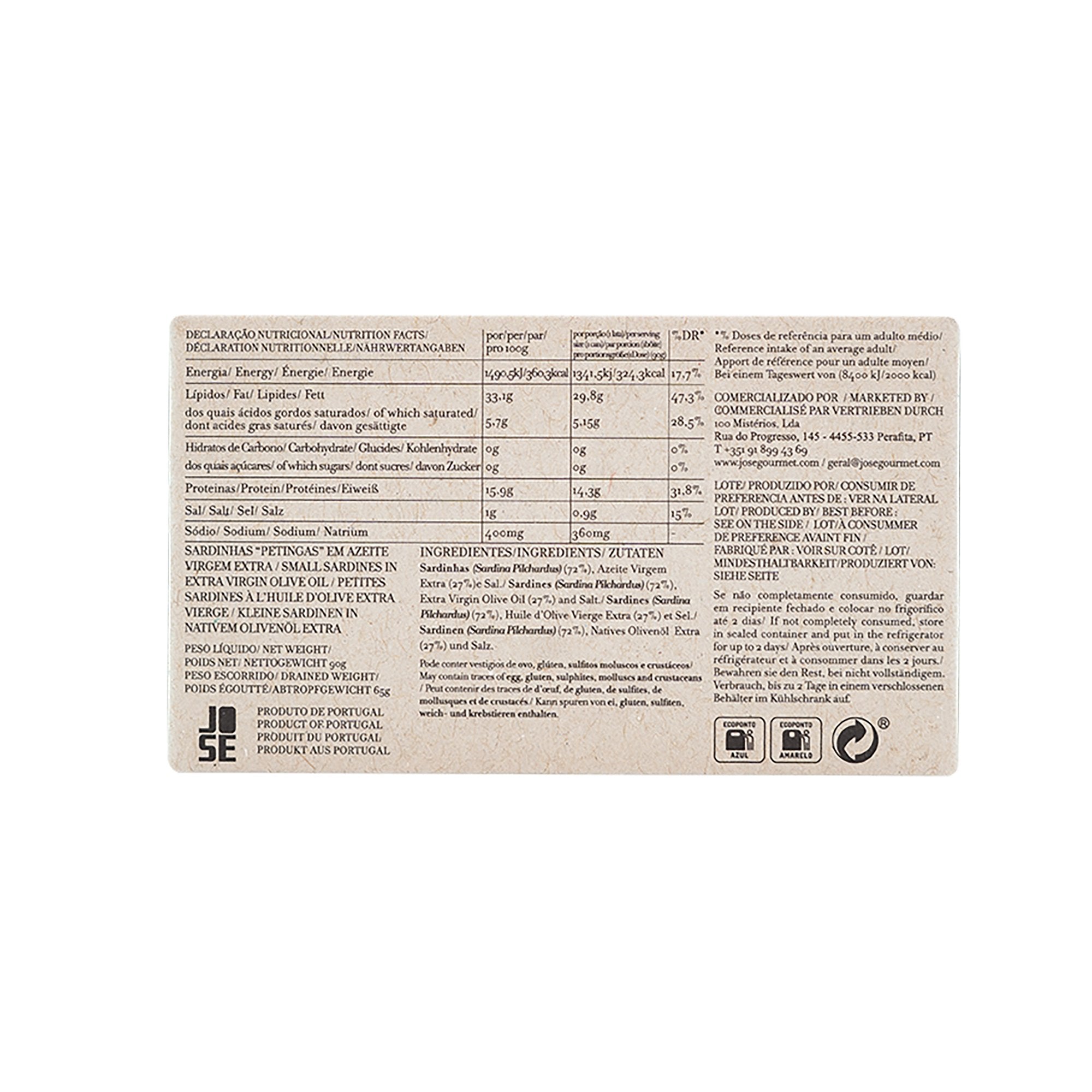 Petingas à l'huile d'olive extra vierge - José Gourmet